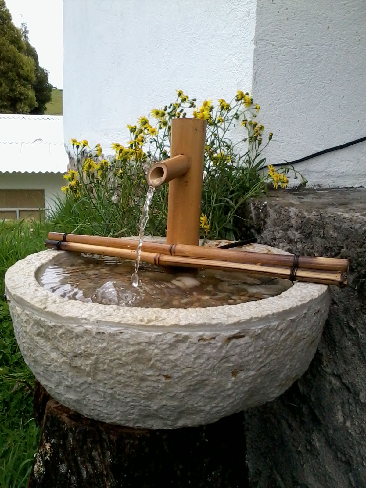 fuente redonda diámetro 35 cms salida de agua con media caña