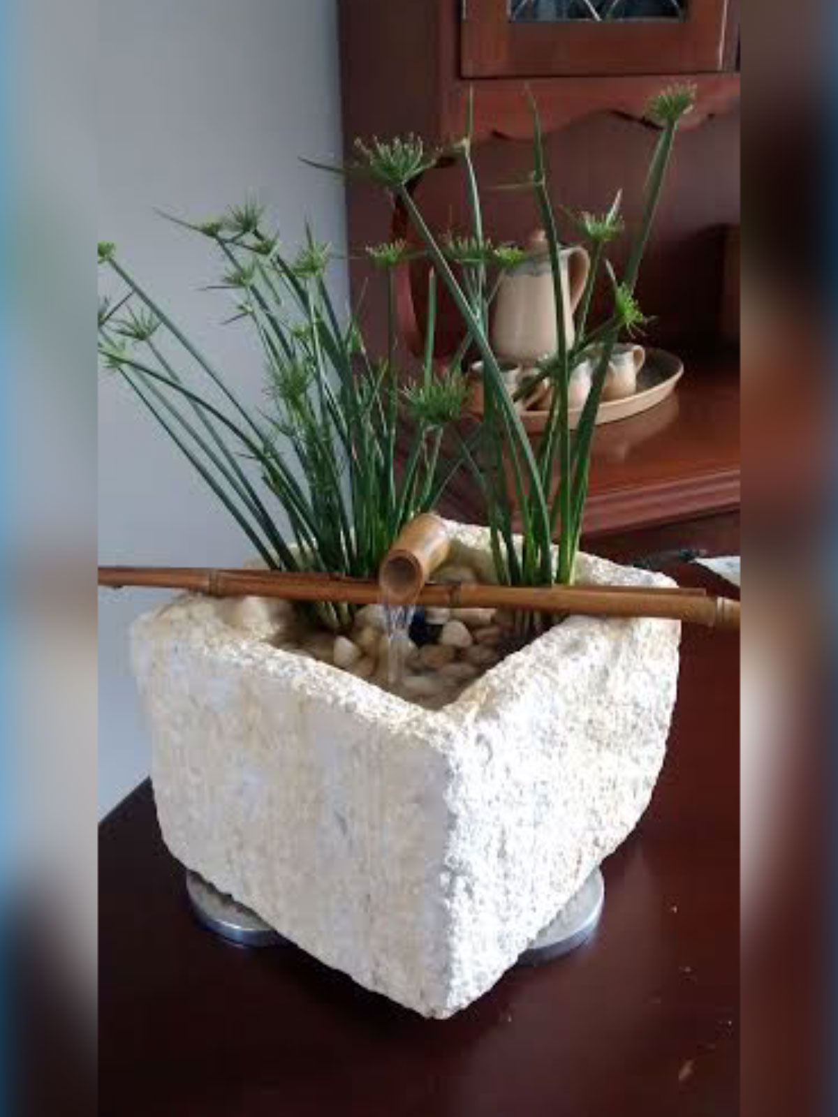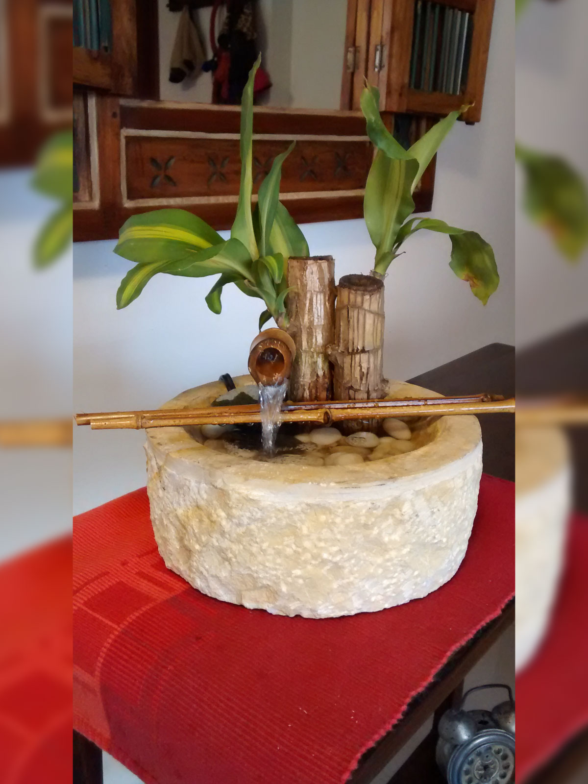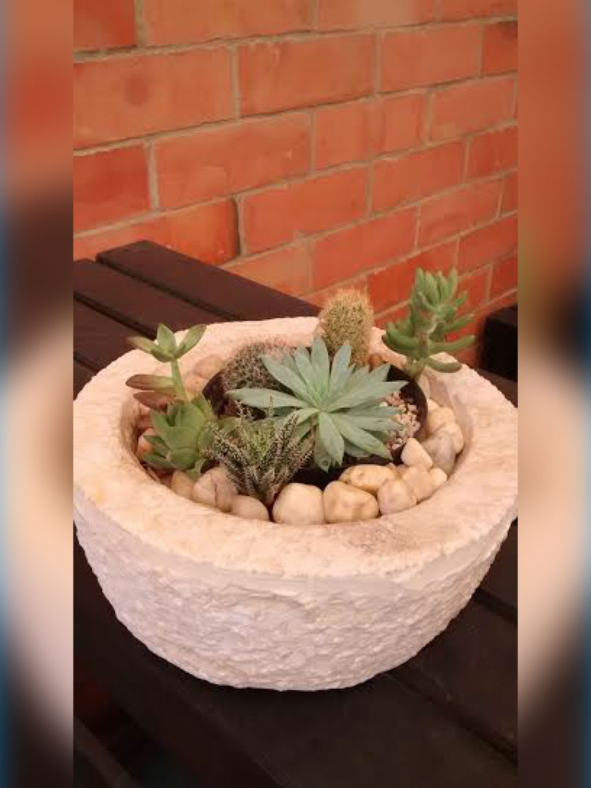 fuente diámetro 50 cms, con matera interna de suculentas