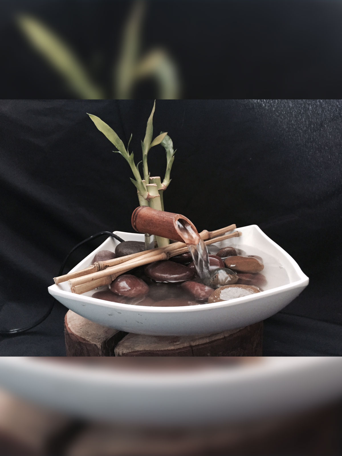 fuente pequeña en plato melamina color negro tamaño 20 cms